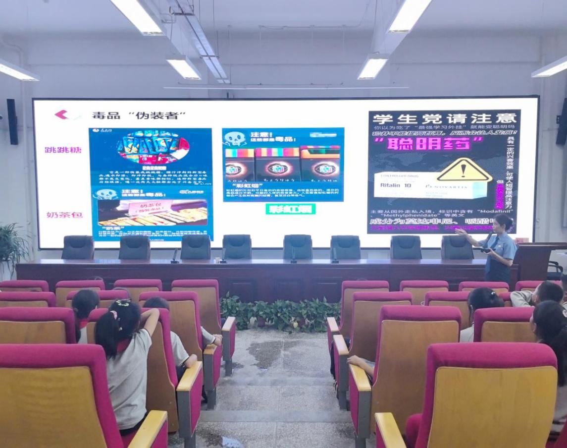 在碧桂园小学,未检干警聚焦禁毒教育,以“你知道‘上头电子烟’可能隐藏毒品吗?”“如何拒绝陌生人提供的‘提神饮料’?”等问题引发思考,逐步揭示麻醉药品和精神药品的成瘾机制与健康危害,重点揭露了新型毒品通过“电子烟”“糖果”“贴纸”等伪装形式渗透的陷阱。通过情景模拟、视频展示等多种方式,让学生深刻认识到毒品对身心健康的危害、新型毒品的隐蔽性以及涉毒行为所带来的法律与人生代价,进一步强化“远离第一口”的防范意识,在沉浸式体验中学会辨别风险、掌握拒毒技巧。