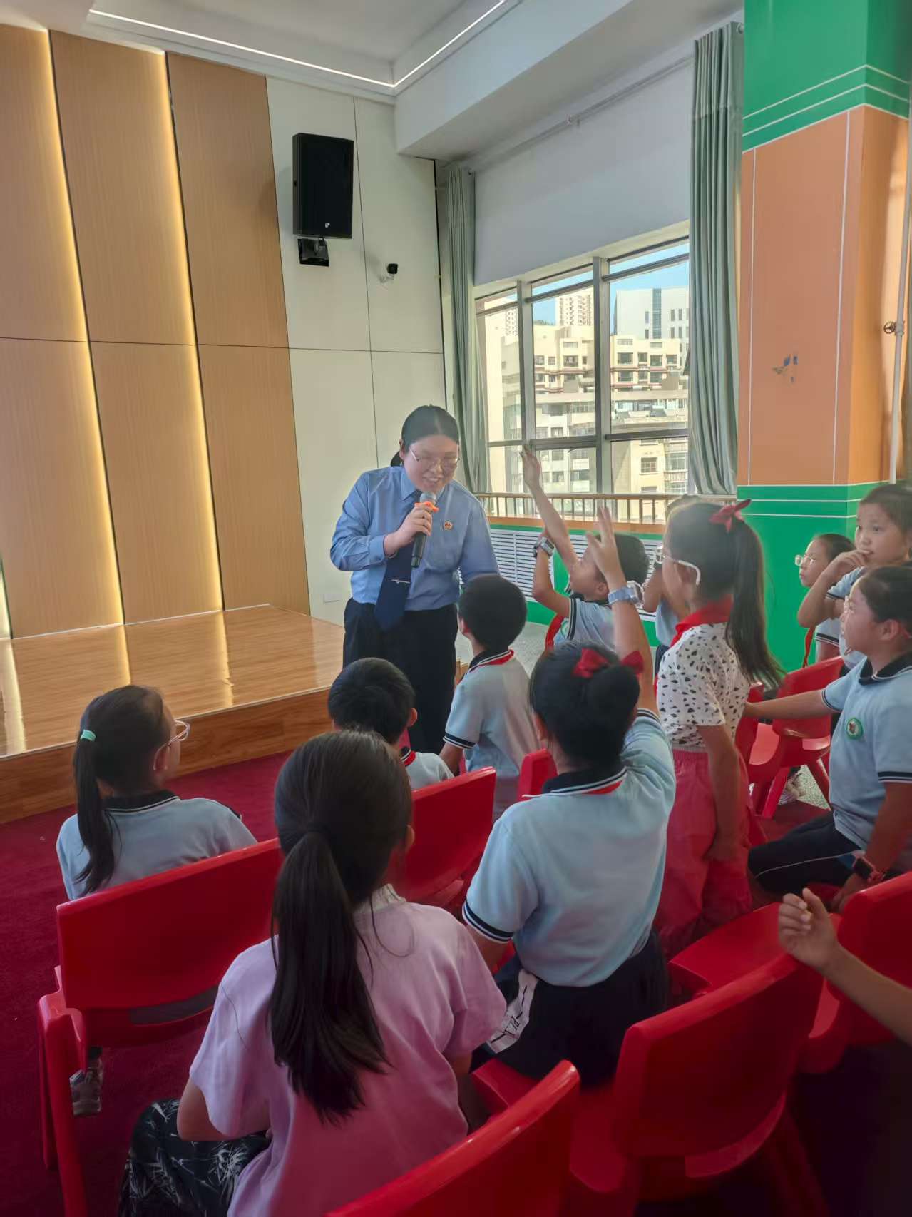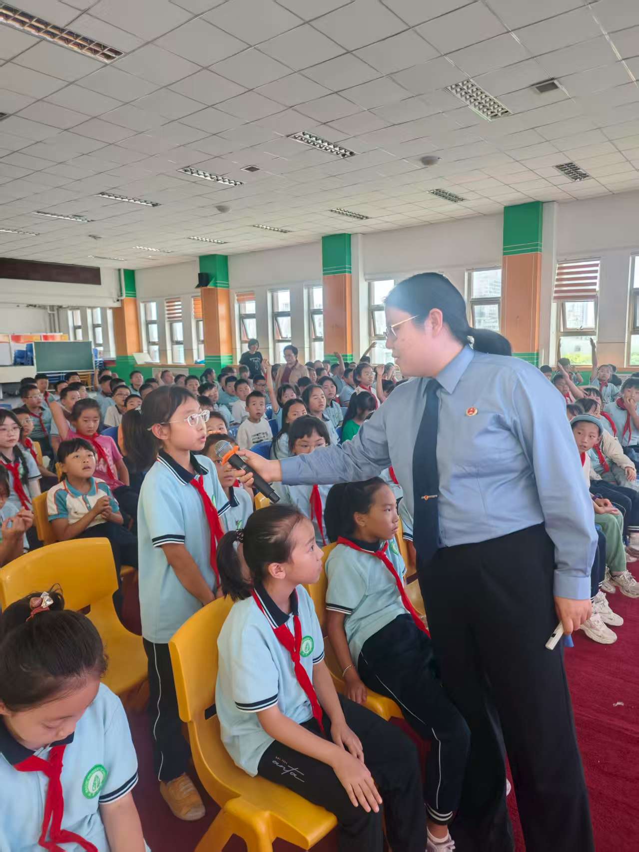 在随后的“法治小问答”环节,同学们踊跃提问:“朋友让我一起起绰号该怎么办?”“被人堵着要钱能不能先给再报告?”检察官逐一解答,引导孩子们树立正确的法治观念和行为准则。