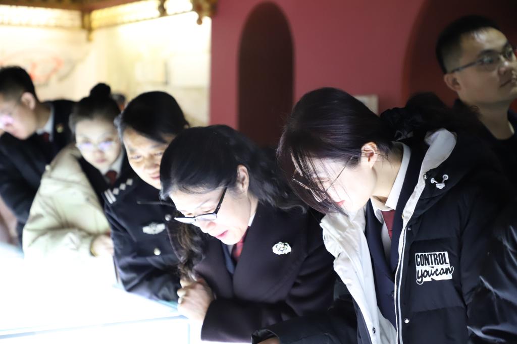 活动伊始,双方党员干警共同走进《四库全书》藏书馆,在厚重典雅的文化氛围中参观藏书楼、聆听专业讲解,深入领略这部中华典籍的编纂历程、体系架构、文化内涵及保护传承价值。浩瀚典籍中蕴藏的“文以载道”“治以文兴”的治理智慧,与当前依法治国背景下“以文化人、以法砺行”的法治理念交相辉映,引导干警从历史视野和人文精神中汲取养分,进一步筑牢忠诚履职、司法为民的思想根基。参观人员一致表示,要将中华优秀传统文化精髓融入法治实践,坚定理想信念、强化使命担当,努力让人民群众在每一个司法案件中感受到公平正义。